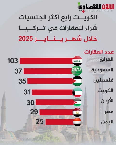 الكويت رابع أكثر الجنسيات شراء للعقارات في تركيا خلال شهر يناير 2025