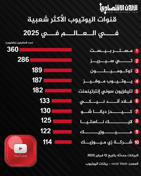 قنوات اليوتيوب الأكثر شعبية في العالم في 2025