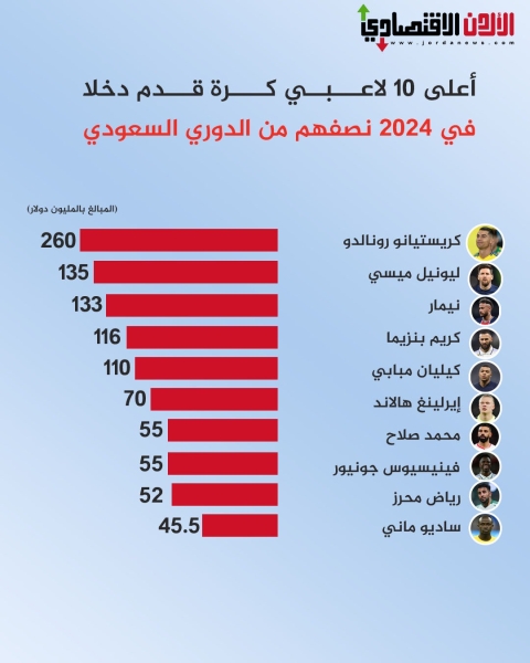 أعلى 10 لاعبي كرة قدم دخلاً في 2024 نصفهم من الدوري السعودي