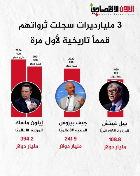 3 مليارديرات سجلت ثرواتهم قممًا تاريخية لأول مرة