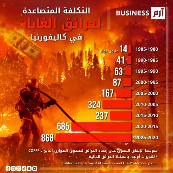 تكلفة متصاعدة لإخماد حرائق الغابات في كاليفورنيا