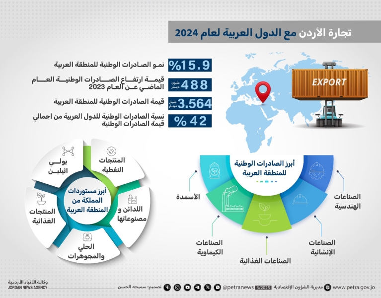 الصادرات الوطنية إلى منطقة التجارة الحرة العربية تحقق نمواً ملحوظاً خلال العام الماضي بنسبة 15.9%