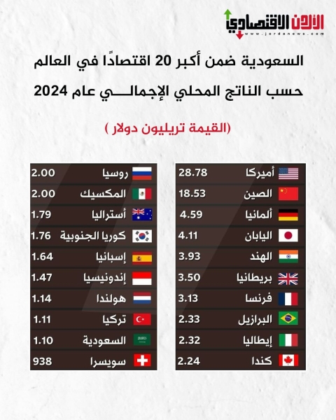السعودية ضمن أكبر 20 اقتصاداً في العالم حسب الناتج المحلي الإجمالي عام 2024