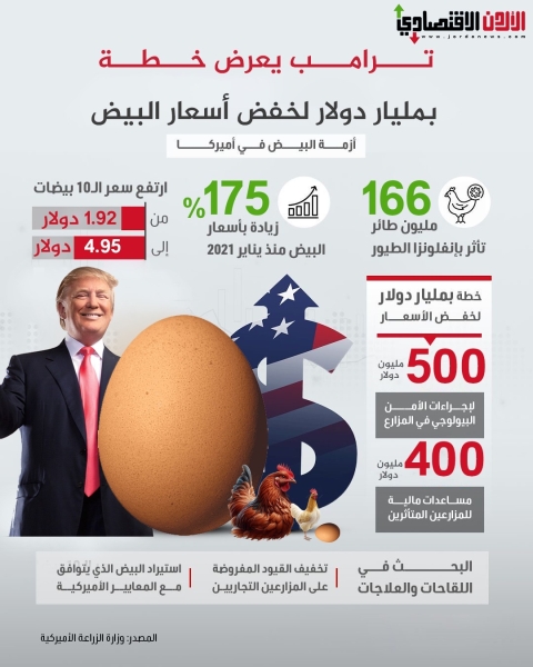 ترامب يعرض خطة بمليار دولار لخفض أسعار البيض