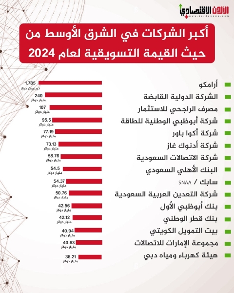 أكبر الشركات في الشرق الأوسط من حيث القيمة التسويقية لعام 2024
