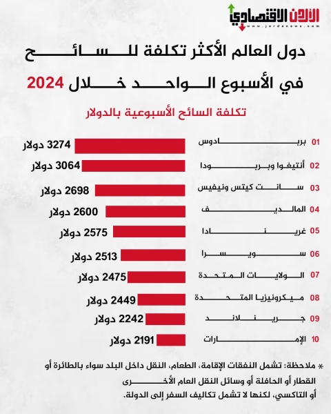 دول العالم الأكثر تكلفة للسائح في الأسبوع الواحد خلال 2024