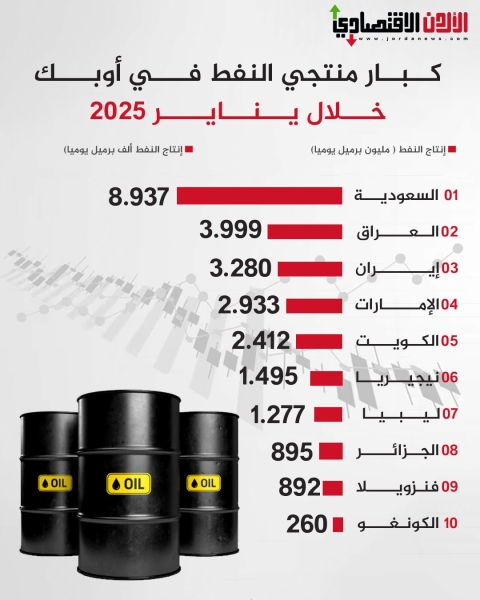 كبار منتجي النفط في أوبك خلال يناير 2025