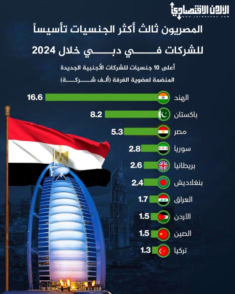 المصريون ثالت أكثر الجنسيات تأسيساً للشركات في دبي خلال 2024